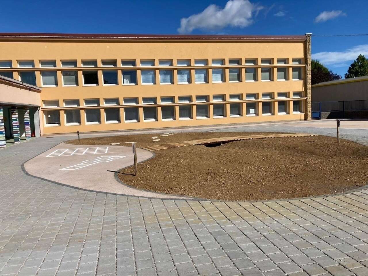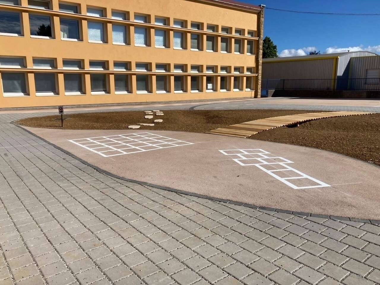 Dans cette cour d'école, véritable parking bitumé à l'origine, les aménagements s'inscrivent dans l'objectif de réduire l'artificialisation et concernent: